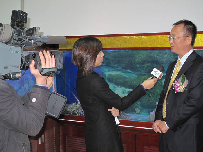 同一天,深博泰生物科技有限公司深圳公司在新落成的產(chǎn)業(yè)園內(nèi)盛大開張,公司董事長王榮輝及賈教授出席了剪彩儀式并為深博泰深圳公司揭牌剪彩。龍崗電視臺、深圳僑報等多家媒體到場報道并專訪了王榮輝董事長,王董事長向新聞媒體介紹了公司的相關(guān)情況并表示對龍崗海洋生物產(chǎn)業(yè)園及深博泰深圳公司的前景充滿信心。