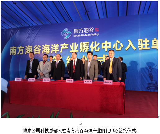 2016年11月24日廣東省科技廳葉景圖廳長、廣東省科學(xué)院李定強(qiáng)院長、湛江市王中丙市長對廣東省科學(xué)院與博泰公司展開全方位合作做了重要講話與指示,做為南方海谷首批入園成員單位對博泰公司科技創(chuàng)新能力及產(chǎn)業(yè)發(fā)展給予了高度評價也對博泰公司發(fā)展提出了新的要求和期望。博泰公司科技總部入駐南方海谷海洋產(chǎn)業(yè)孵化中心,博泰將在這里揚(yáng)帆起航,再創(chuàng)博泰輝煌。