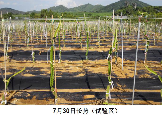 2015年7月4日至30日,我司技術(shù)人員在金穗公司火龍果基地對產(chǎn)品蝦肽根苗壯、蝦肽土也樂進行試驗,試驗結(jié)果盡如人意 ,又一次證明了蝦肽肥料對于土壤、作物來說,是強有力的助手?。。?/p>